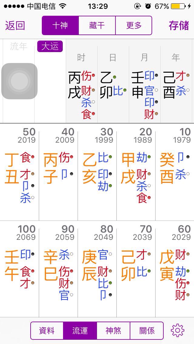 对于女性来讲,官杀代表了老公或情人,所谓官杀就是正官和七杀,这个在八字中代表了老公或情缘的意思,在八字中观察这两个星的出现与位置,就可以知道自己的婚姻情况。 一、夫星的多与寡 正官或七杀在命格中的多与少,可以推测出女性的婚姻好或者坏。一般情况下,命盘中只有一个正官或七杀的女性,婚姻感情会相对比较牢固。 正官或七杀比较多的女性,在命格中代表了夫星较多,也代表了情缘可能多,这样的命格女性在情感运上容易不顺利,婚姻运上会备受考验。 正官或七杀在命格中一个都没有,这样的命格又称之为;八字无夫星。这样命理的女性容易在情感运上没有着落的现象或者另一半总是不出现或者难成婚姻等问题。 二、不利婚姻的标志 正官或七杀在女性中代表了夫星,那伤官在命格中就代表了不利夫星或婚姻的特征。 伤官过多:一般命格中伤官星超过三个就是多了,如果达到四个就是很多了,正常情况下伤官星越多就对婚姻越起到负面作用,如果达到了四个,那婚姻就容易变得很不利,比较难顺利。 日坐禄刃:日柱的地支代表了婚姻宫,如果日支为禄刃,即意味着对配偶不利,需要八字相合的双方才有机会成婚,所以婚姻感情比较坎坷。 三、行运的情况 有些女性的八字原局,婚姻方面看上去不错,但在后天行运上如果遇到冲克婚姻宫的大运,也容易出现婚姻感情分裂的情况,因为冲往往代表了变动,在目前婚姻不易稳定的社会环境中,此种格局也是容易出婚姻失败的情况,但这种情况是可以通过流年运势调整和风水布局化解的。 下文为“天后”王菲的八字分享: